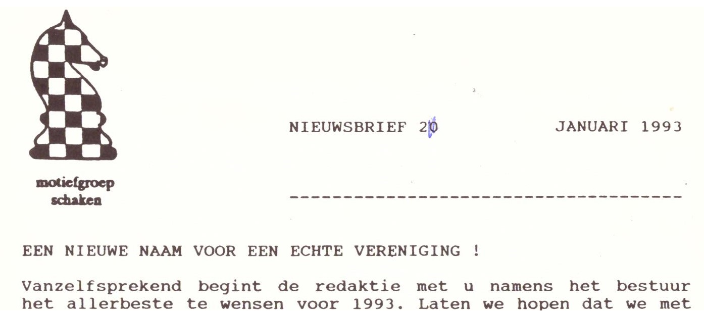 "Ergens in het najaar van 1983 zaten Sjoerd van Ketel en ondergetekende bij Sjoerd thuis in Leiden te brainstormen over het motief Schaken op postzegels. Beiden waren we schaker en filatelist. Dat contact leidde tot de ‘oprichting’ van de Motiefgroep Schaken. Het bestuur was direct duidelijk: Sjoerd als secretaris en ik als voorzitter. Enthousiast benaderden we zoveel mogelijk contacten: personen, schaakverenigingen en de pers. Hoewel er nog geen internet was, was het aantal reacties behoorlijk. Conclusie: er is belangstelling genoeg om een contactdag te organiseren. En al op zaterdag 25 februari 1984 vond de eerste bijeenkomst plaats van de Motiefgroep Schaken, en wel in Geldermalsen in een zaal met de naam ‘Ons Huis’. Gelegen tussen Eindhoven – mijn woonplaats – en Leiden, en goed per trein bereikbaar. Er meldden zich ruim 20 geïnteresseerden. Geweldig!! Sjoerd stond voornamelijk bij de ingang en informeerde naar de schaakverzamelingen. Ikzelf maakte samen met echtgenote Hélène (uitgebreid) kennis met de onbekende verzamelaars. De hartverwarmende reacties bij een uitgebreide gedachtewisseling zorgden ervoor dat al direct een 2e bijeenkomst werd afgesproken. Op zaterdag 3 november 1984 vond, weer in Geldermalsen, vervolgens de 2e bijeenkomst plaats. En wederom een groot succes. Er zijn dan al leden die een deel van hun verzameling tentoonstellen. Er worden schaakborden en -klokken meegenomen. En we zullen zorgen voor een “nieuwtjesdienst“ voor nieuw uitgekomen stempels. ............" |