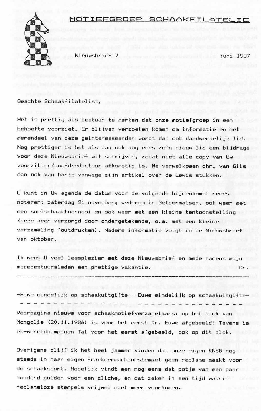 In nummer 7 van de Nieuwsbrief onder meer de volgende onderwerpen:
