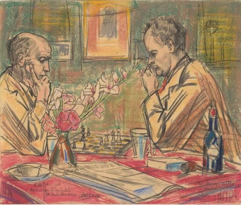 Schilderij van Jan Toorop uit 1916: Arthur van Schendel en Rudolf Triebels tijdens een schaakpartij
