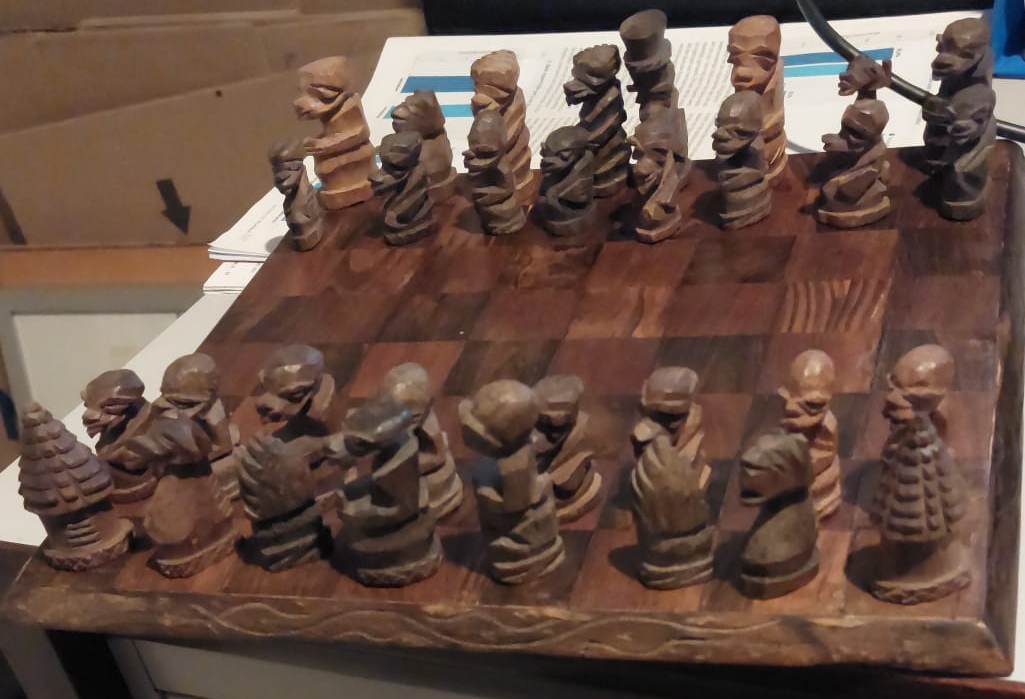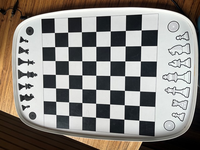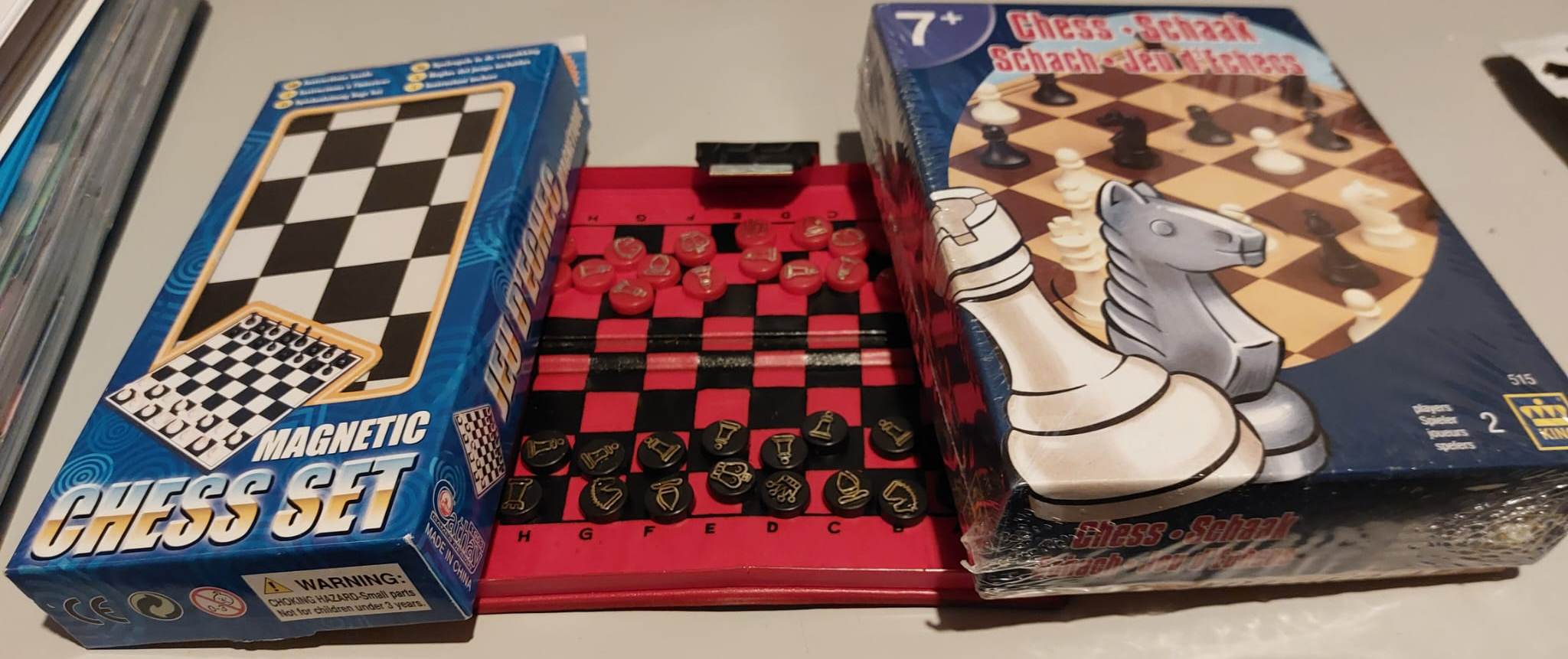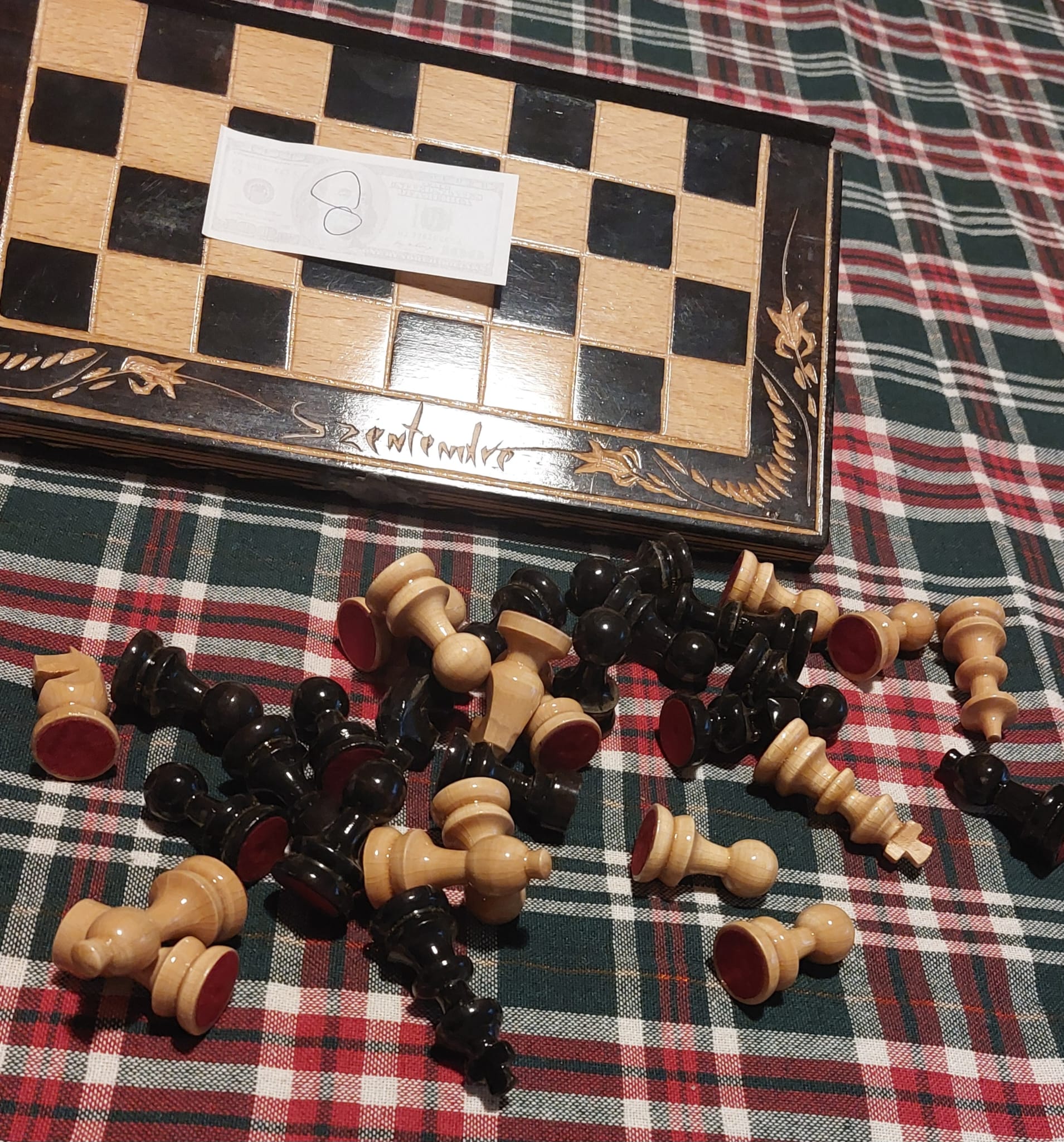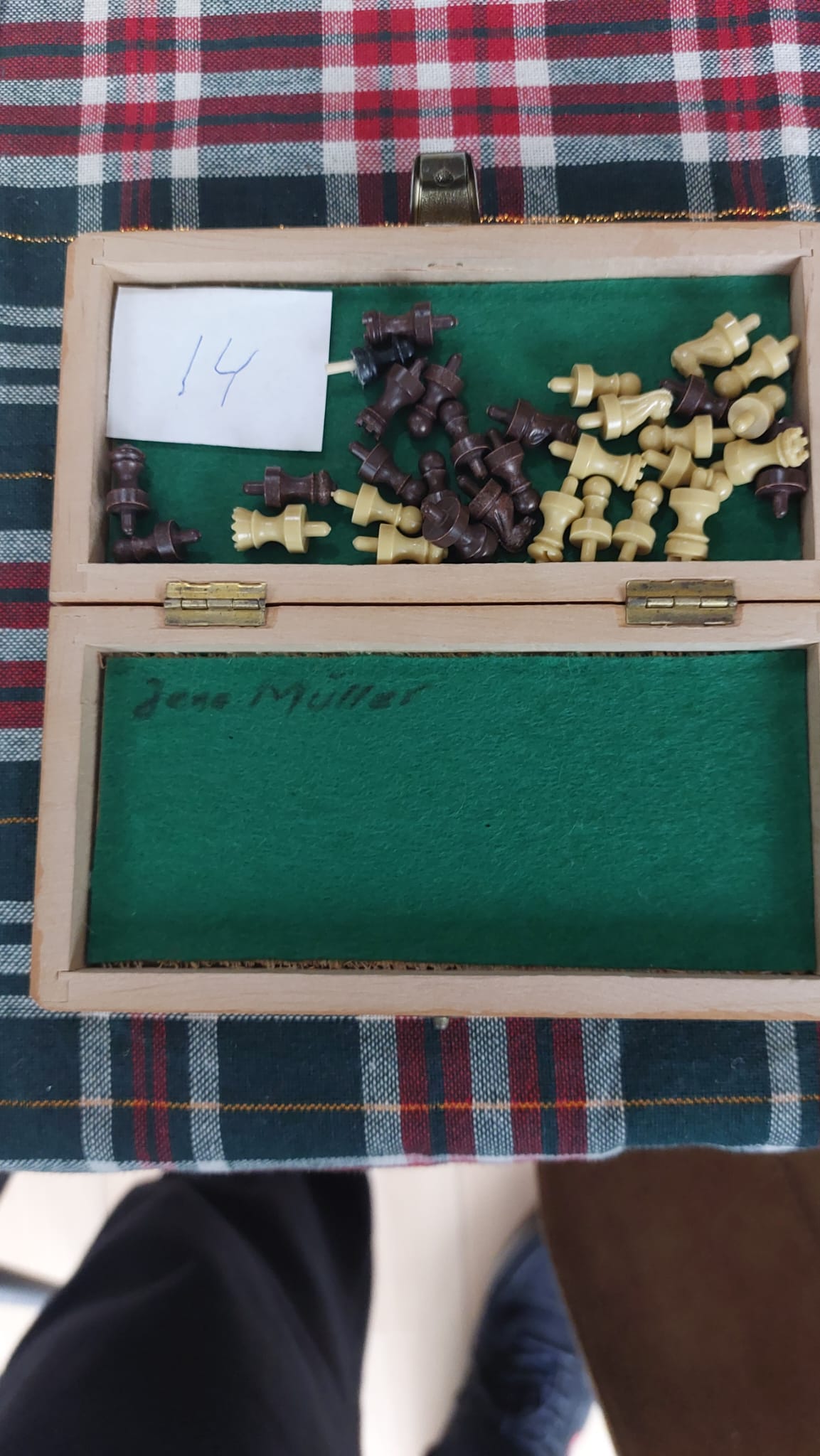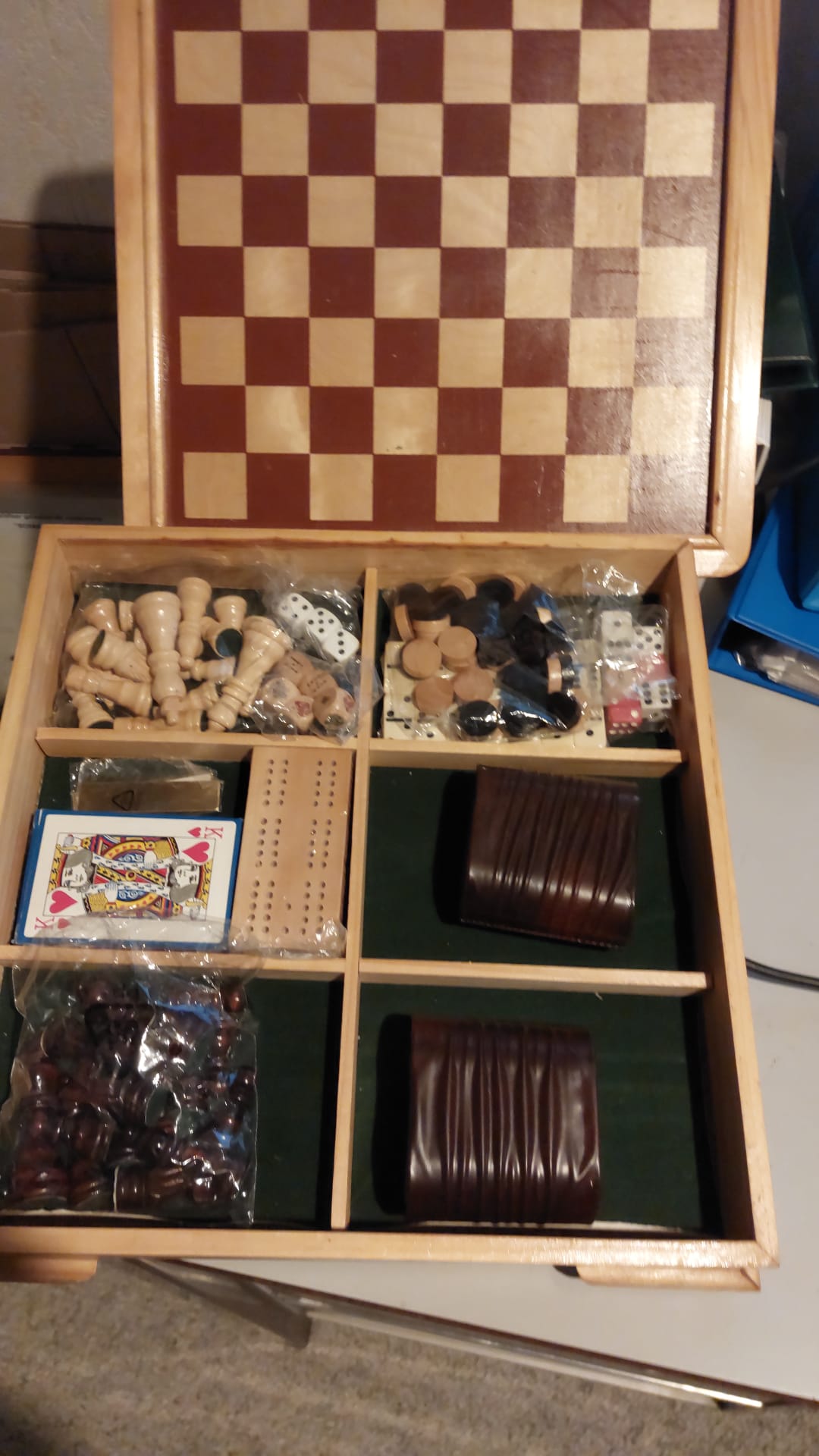 spellendoos hout, o.a. schaak; leuk voor de kleinkinderen; 2 kg |