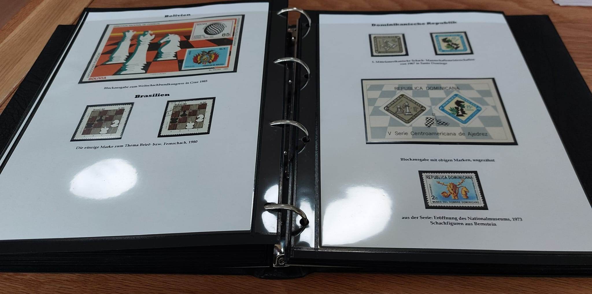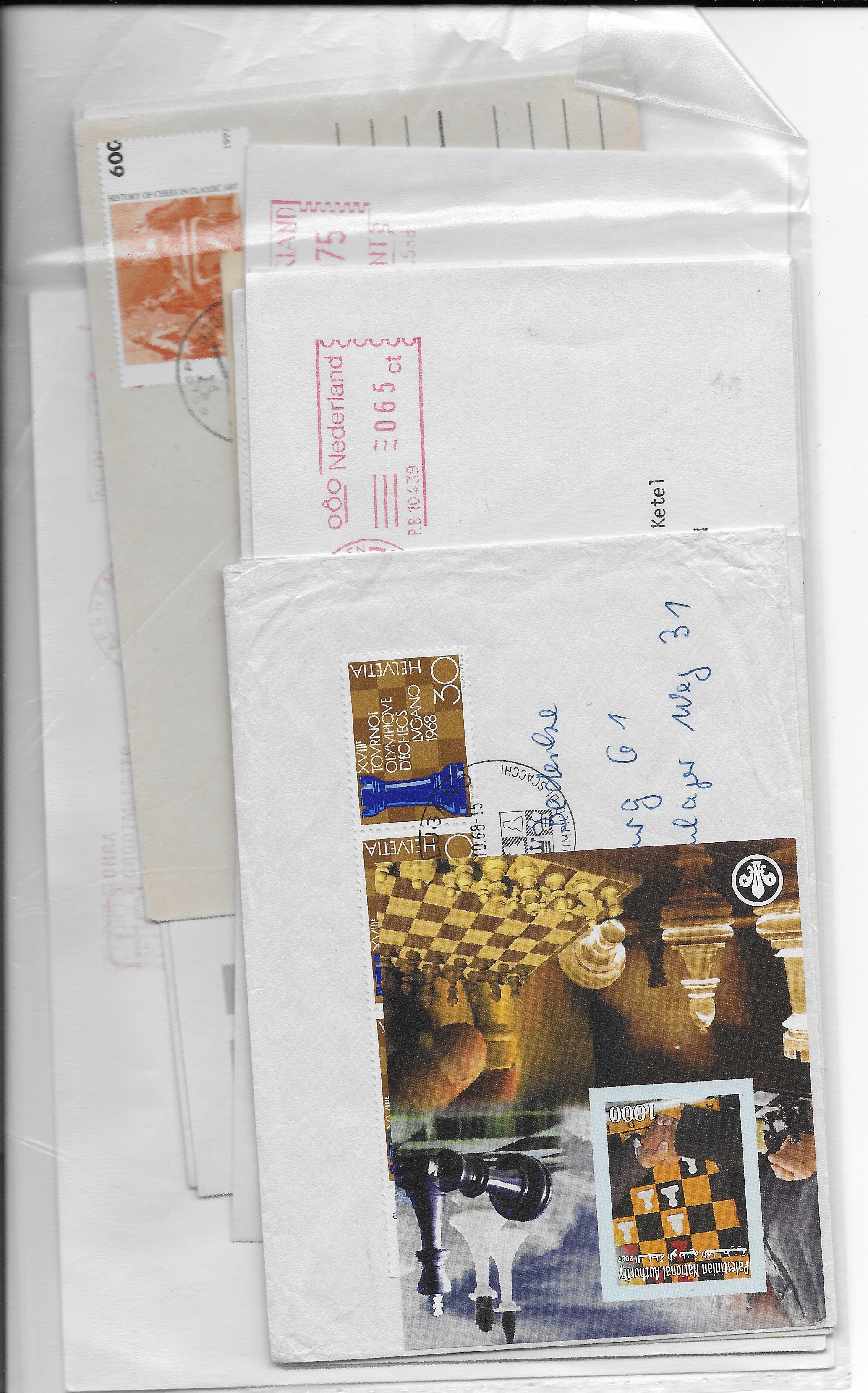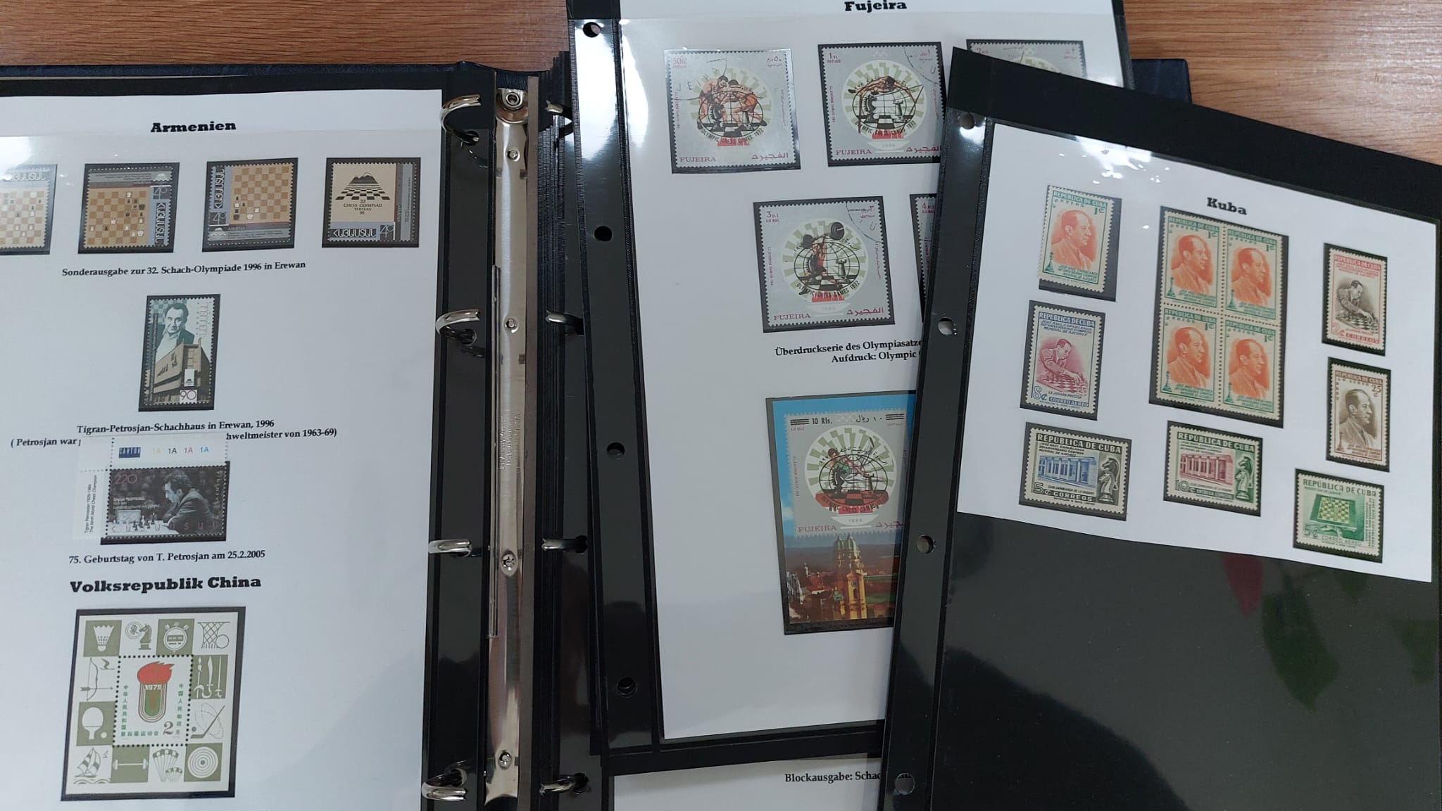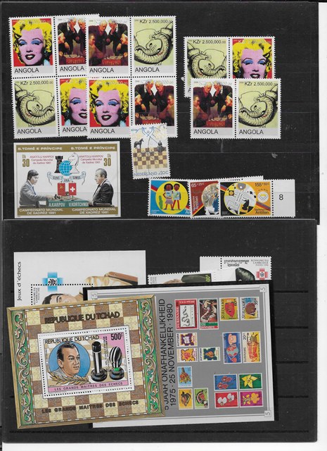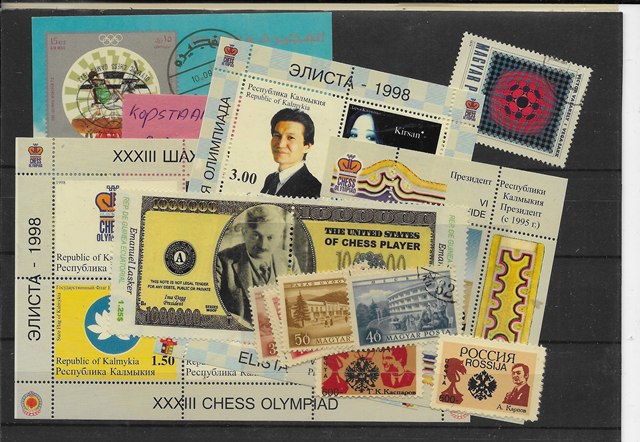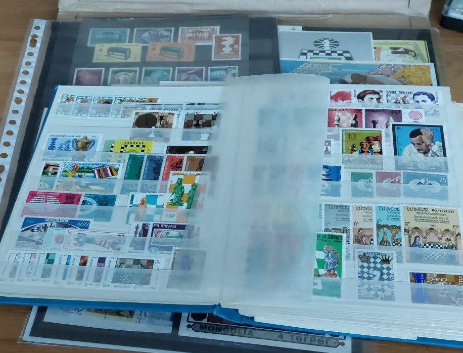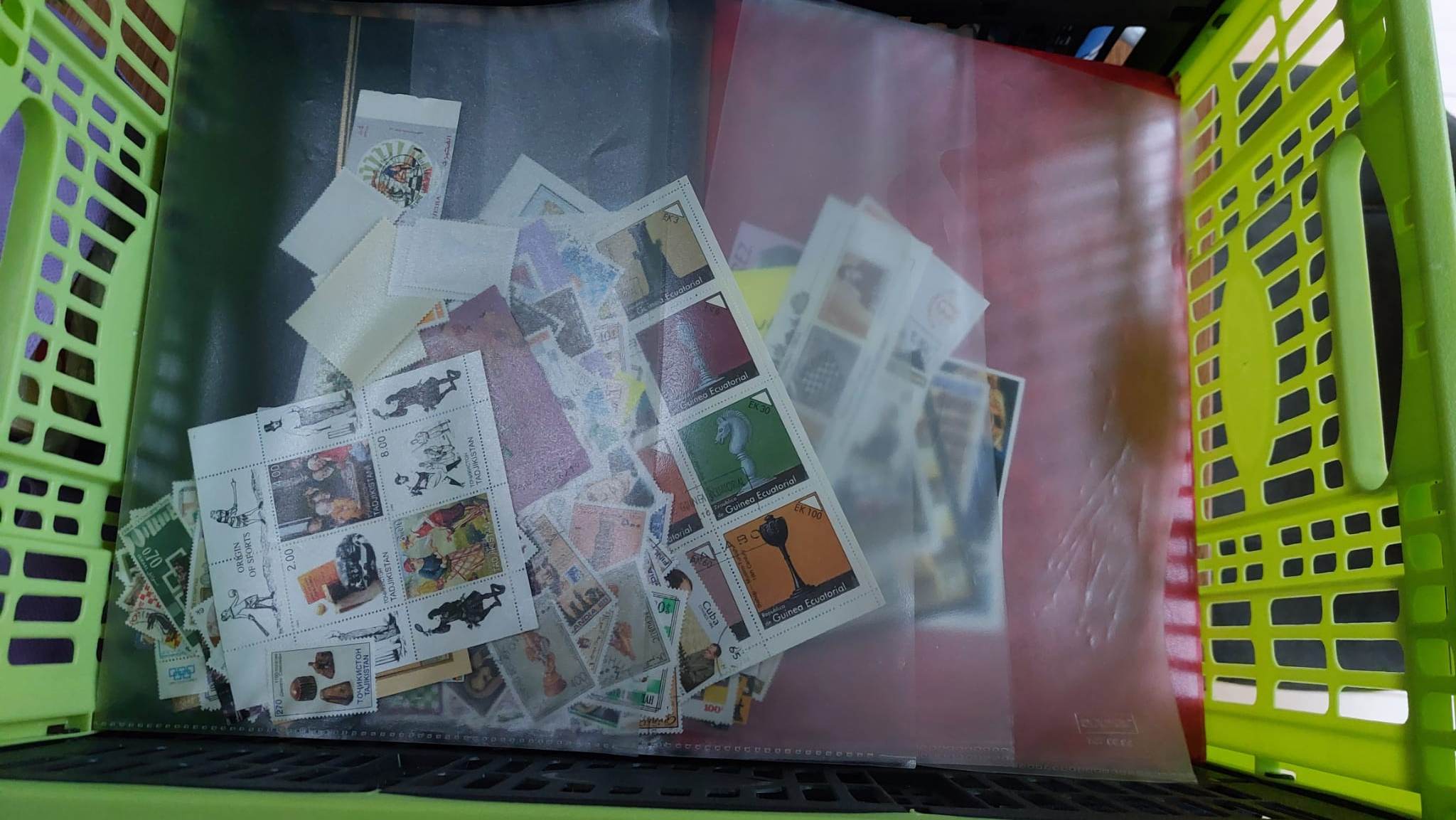 Verrassingskrat met schaakpostzegels; leuk uitzoeken |