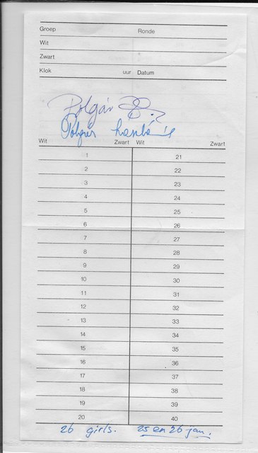 Nederlands notatiebiljet met handtek. Polgar zusjes |