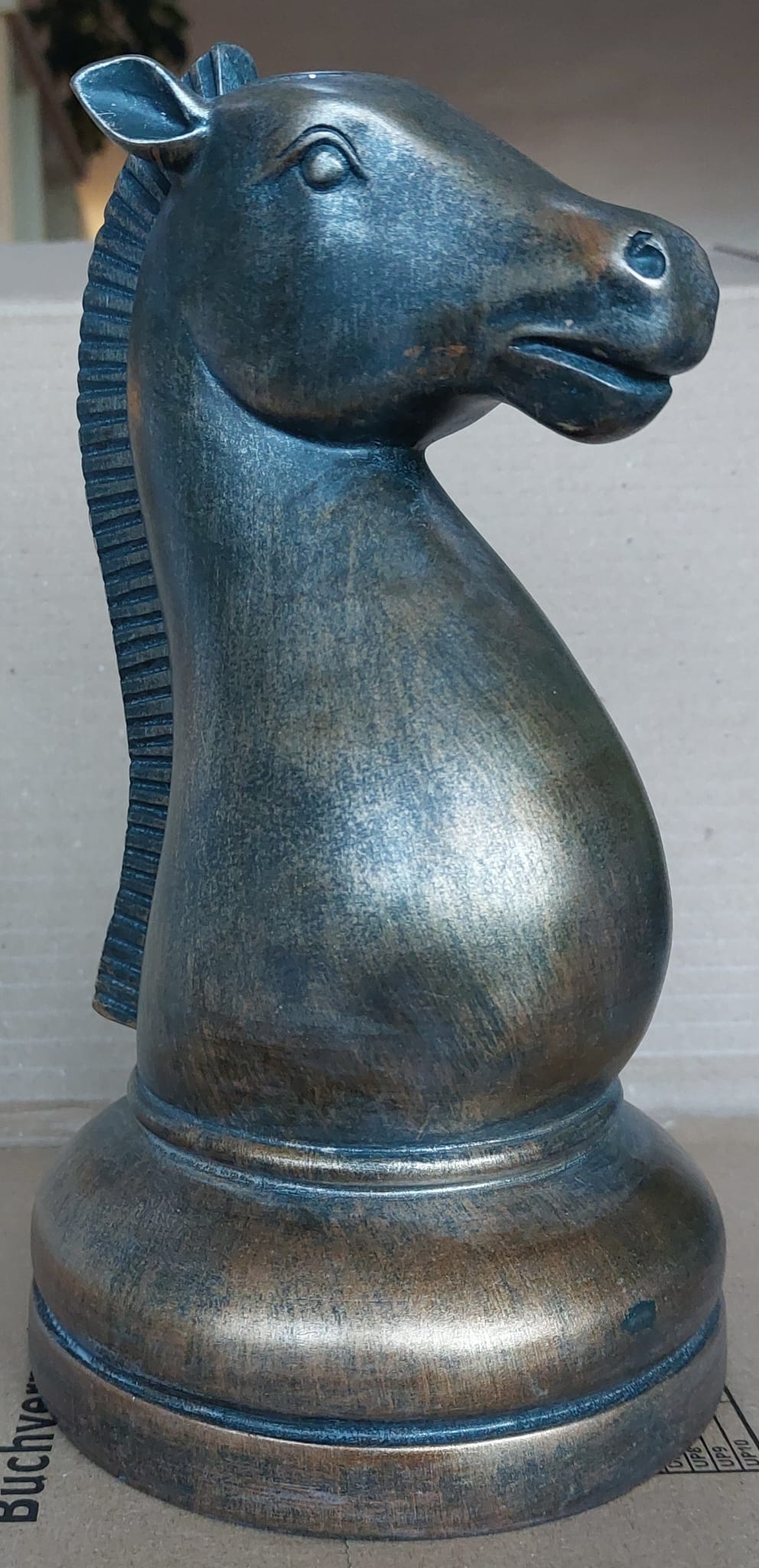 schaakpaard en schaaktoren; kopstaand goudblok |